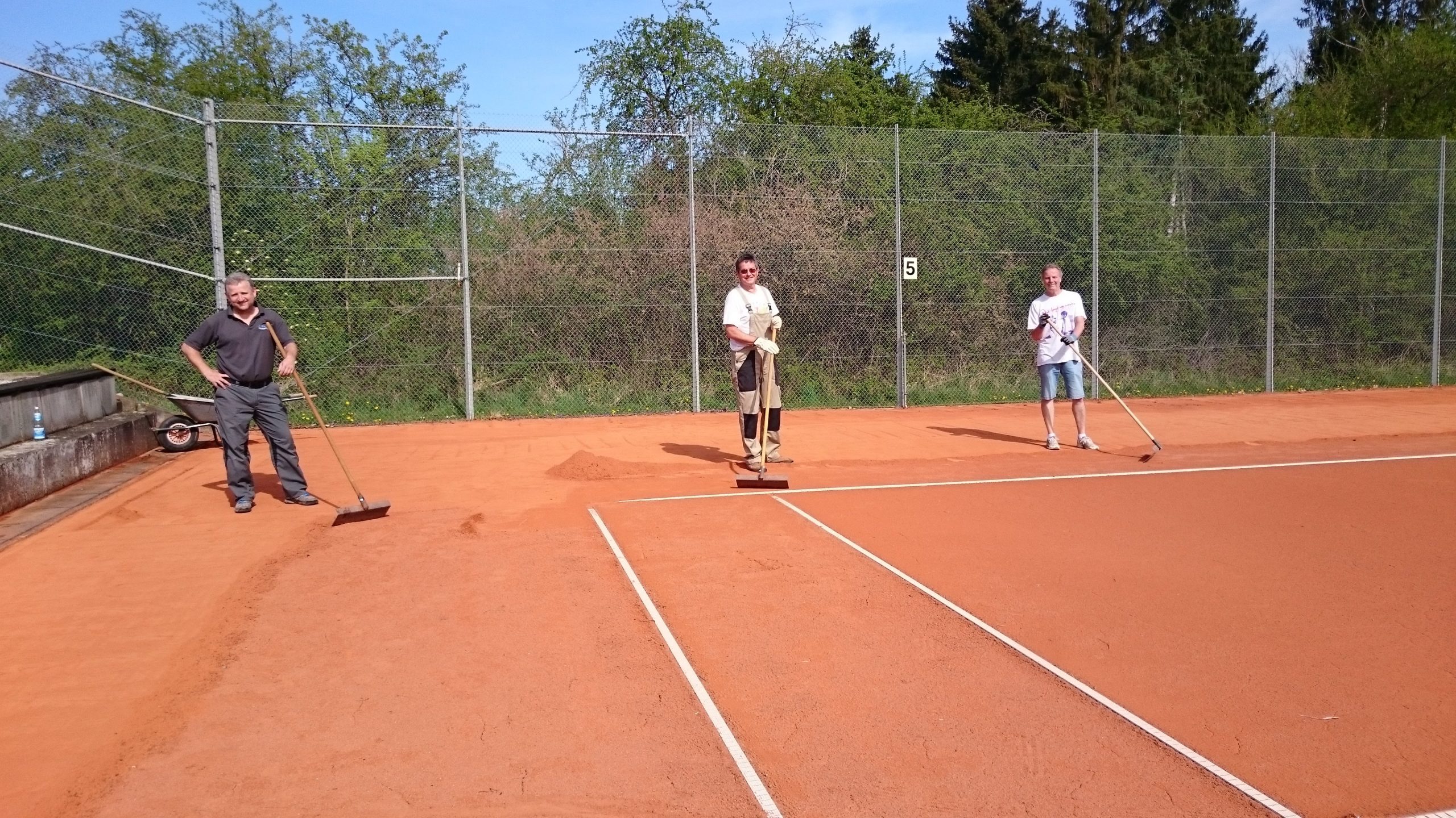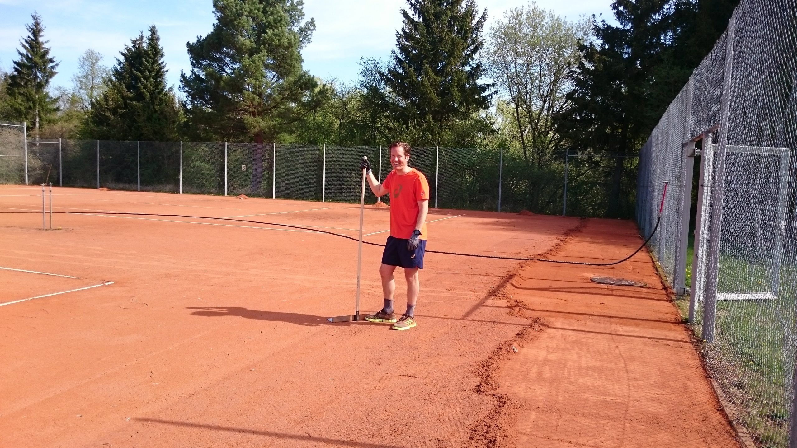 Trotzdem, oder gerade deshalb, haben wir heute begonnen, unsere Anlage auf eine mögliche Tennissaison vorzubereiten. Es fühlte sich an wie vorsichtige Schritte in ein kleines Stückchen Normalität. Und natürlich war alles doch nicht so normal wie sonst: Wir haben Abstand gehalten, wir waren nur Wenige, und wir machen eben alles etwas langsamer und vorsichtiger – aber wir möchten die Tennisplätze jetzt nach und nach herrichten in der Hoffnung, dass uns allen doch noch eine Saison bevorsteht, in der wir unseren geliebten Sport wieder gemeinsam ausüben können.