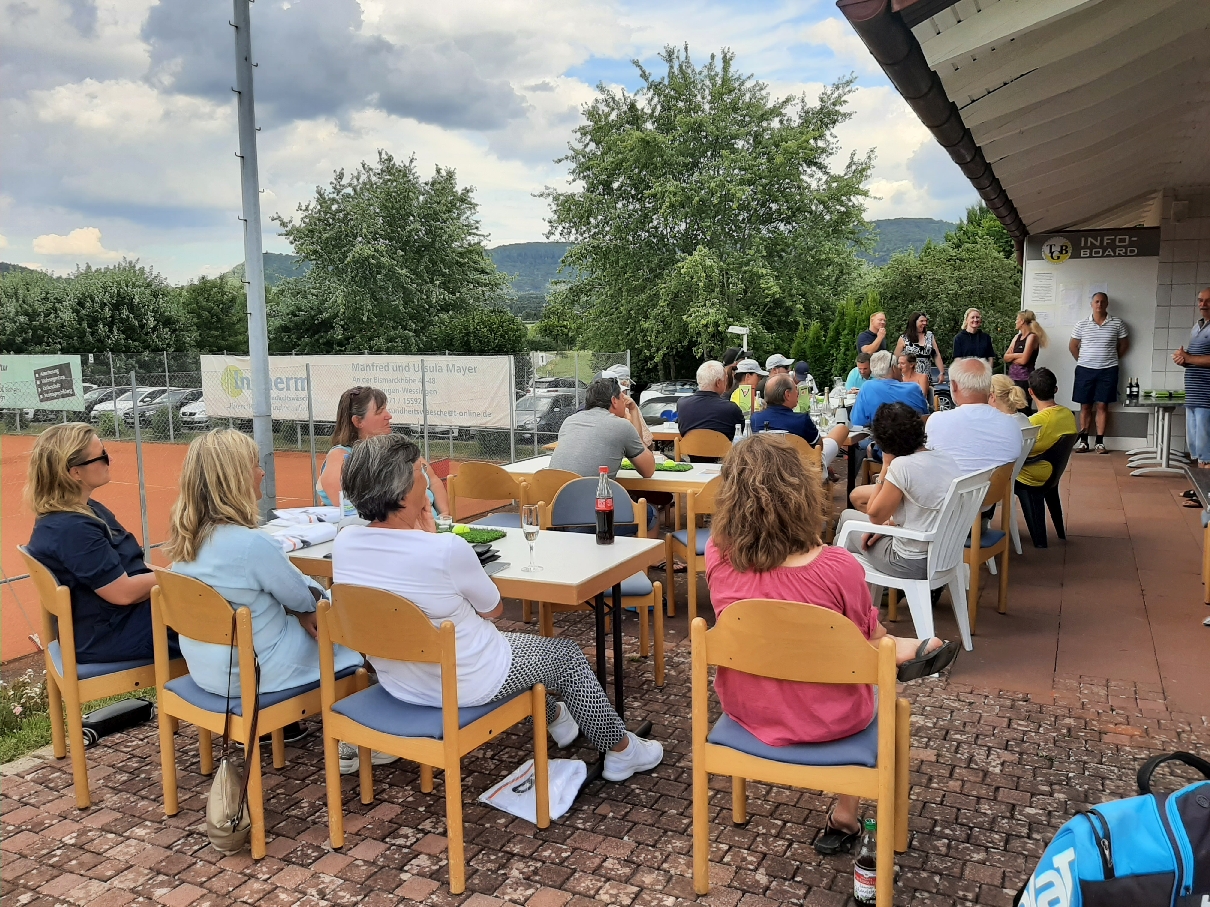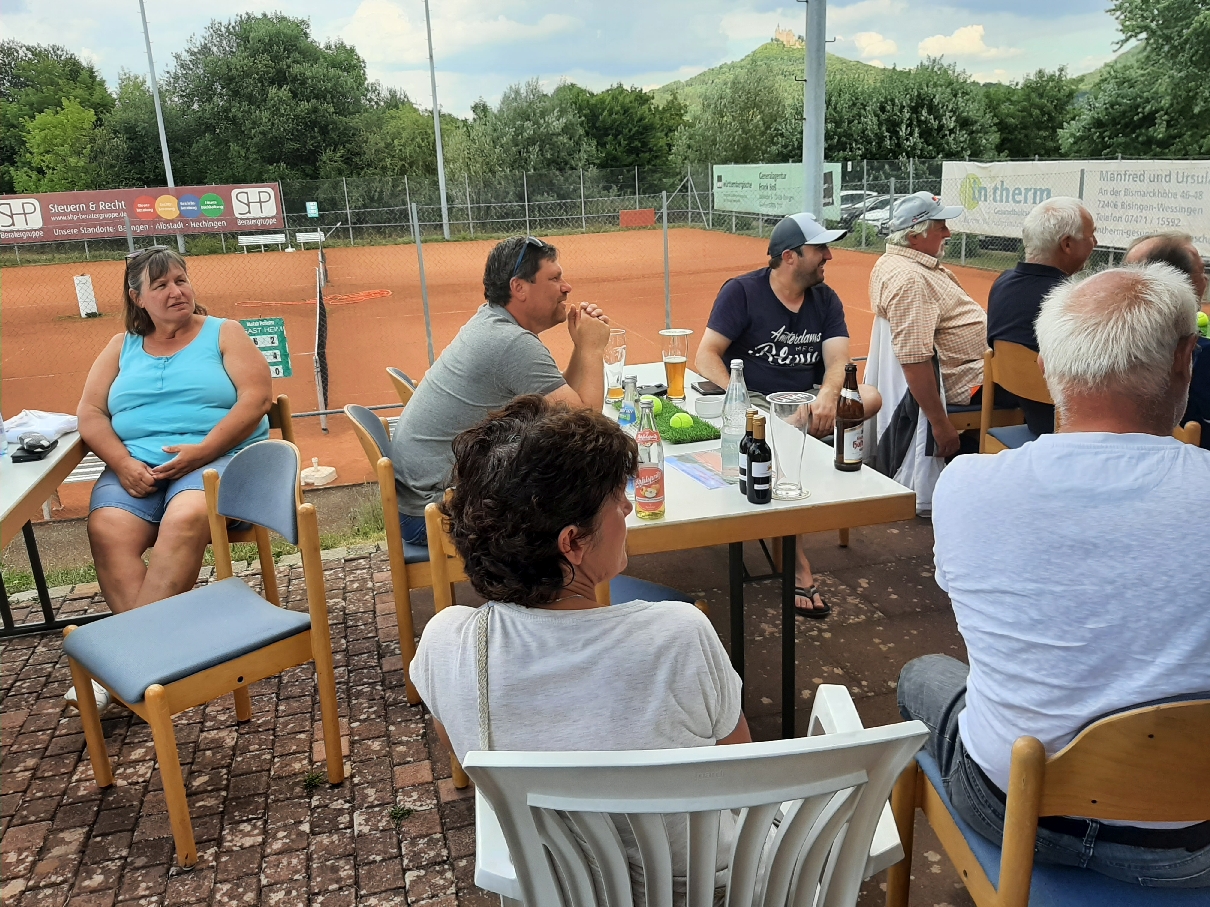 Bei leckerem Essen vom heimischen Gasthaus Rose und kühlen Getränken endete der Turniertag in kameradschaftlicher Stimmung am lauen Sommerabend auf der Terrasse des Tennisstübles der TG Bisingen.