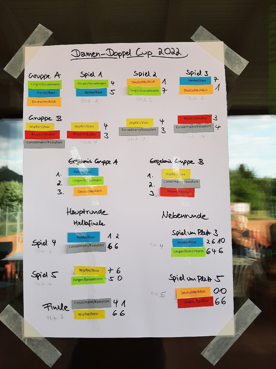 Gleich zwei Teams der TG Bisingen qualifizierten sich beim Damen-Doppel-Cup für die Hauptrunde. Heike Henke und Manu Baur verloren leider ihr Match gegen Elke Conzelmann und Rita Kossytorz vom TC Bildechingen, die damit das Finale erreichten. Dort trafen sie auf die Bisingerinnen Stefanie Wipfler und Isabell Voss, die durch ihren Sieg gegen Heike Geiger und Margarethe Geiselmann von der TG Rosenfeld ins Finale eingezogen waren. Im hart umkämpften Endspiel setzten sich schließlich die Lokalmatadorinnen durch und gewannen den Damen-Doppel-Cup im Bezirk E.